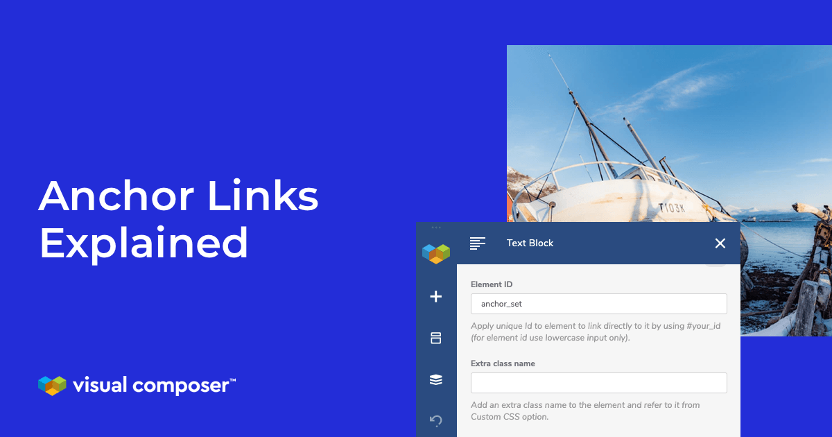 Visual Composer simplifies anchor creation by allowing you to assign element IDs directly: